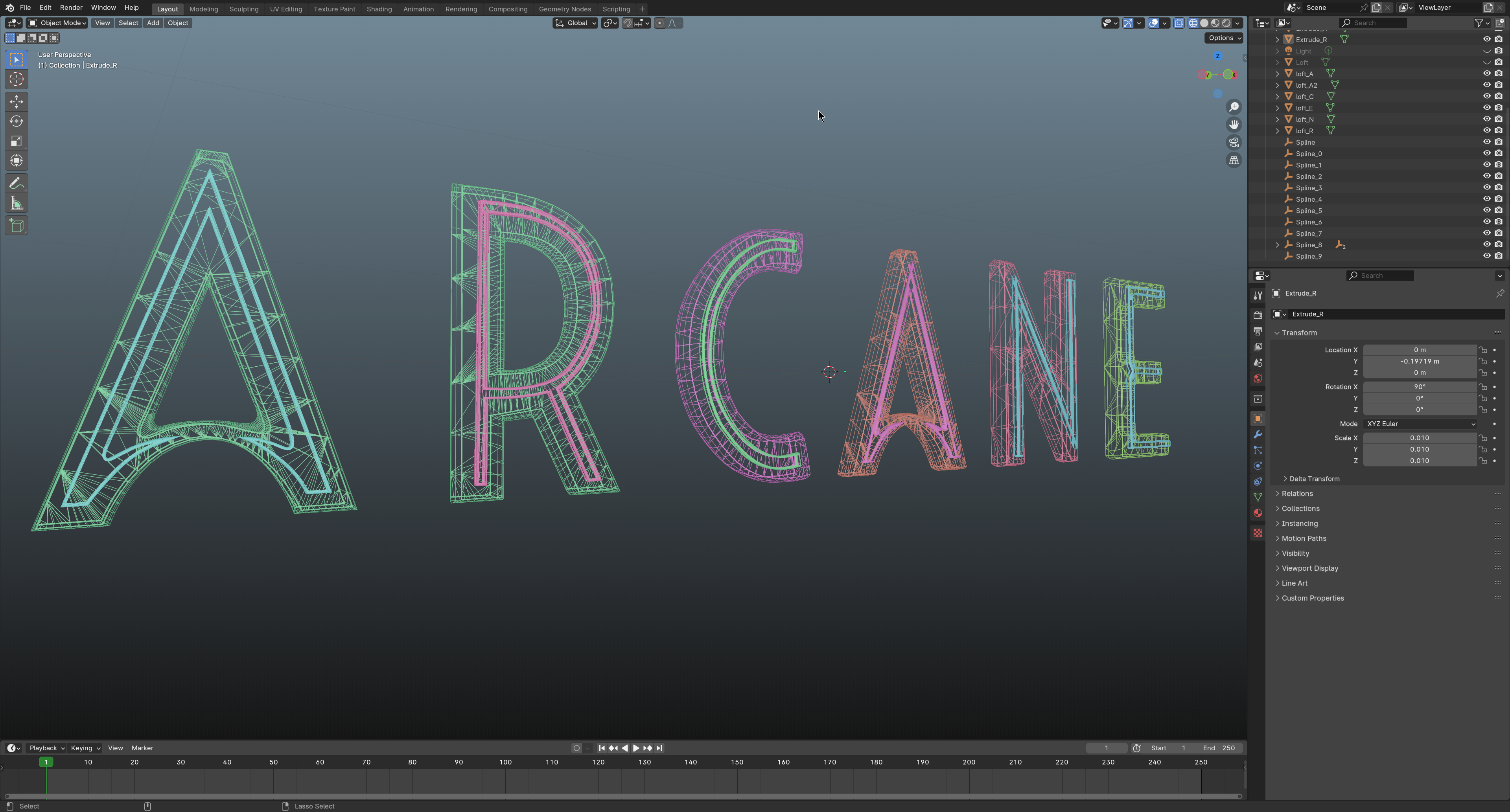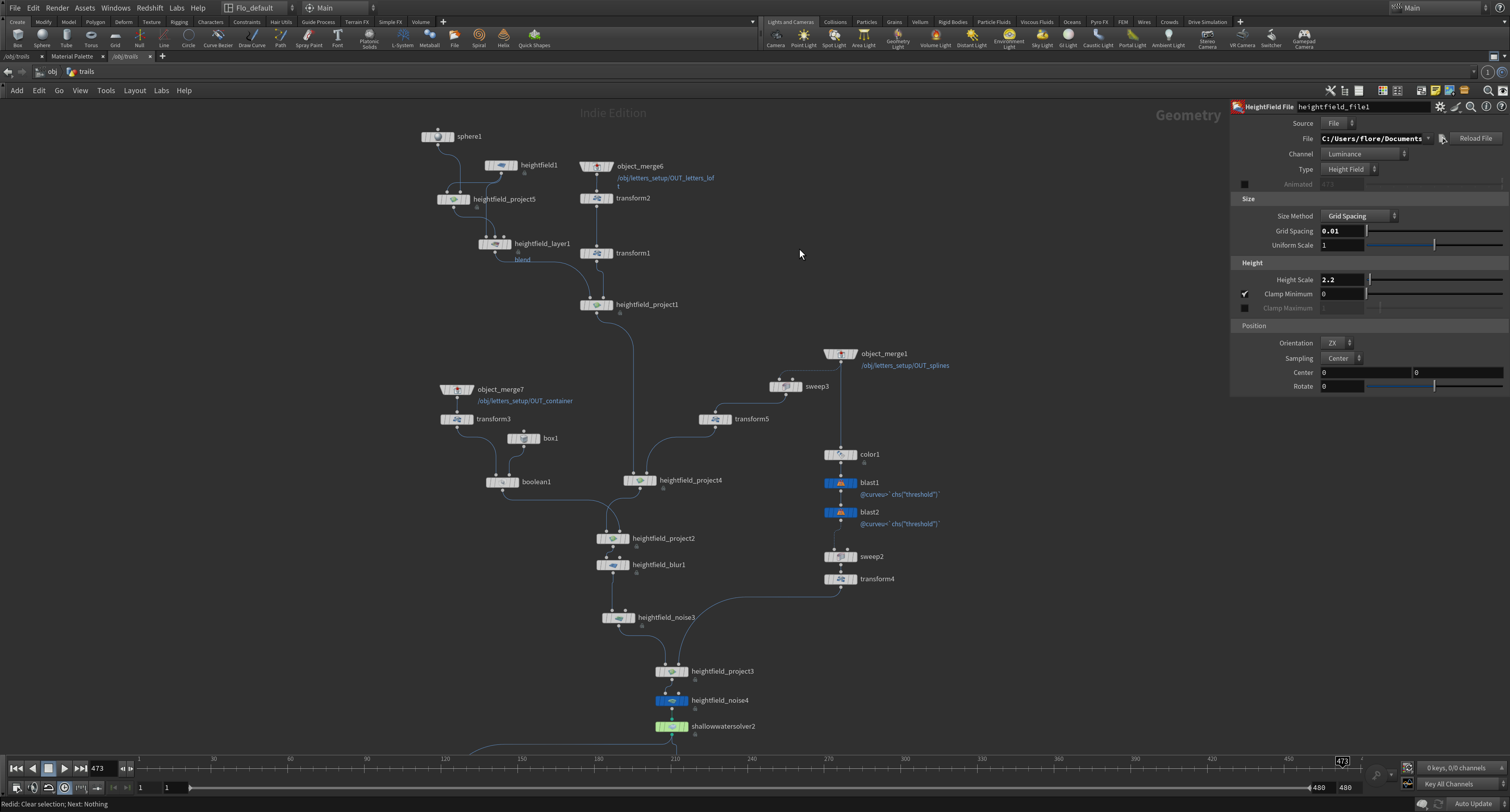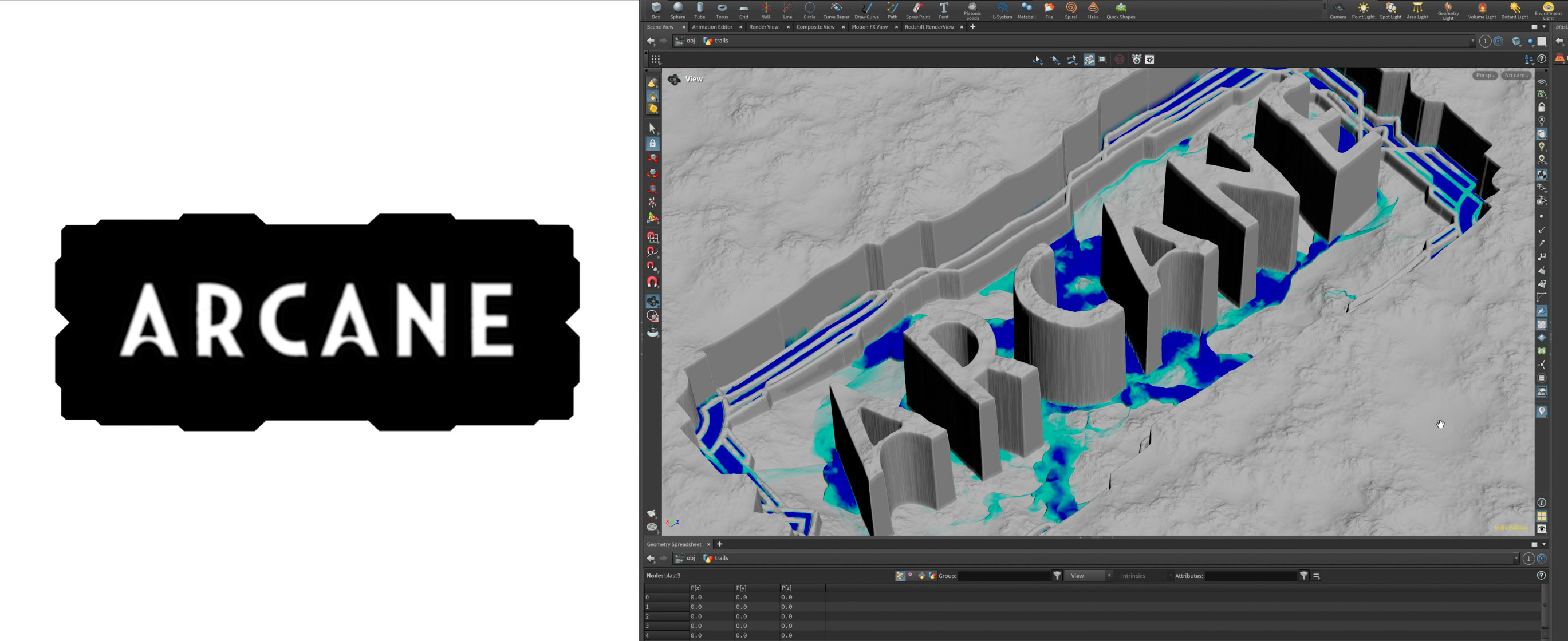 While exploring a technique in Houdini where you use a shallow water solver to create undulating trails, I thought to myself, there is something about the movement of these trails that is both beautiful and elegant, but also somewhat unnatural and mysterious and it reminded me of the animated show Arcane, a show for which I really like the lettering. So I decided to combine this technique and make a logo treatment and I was quite pleased with the results in the end.